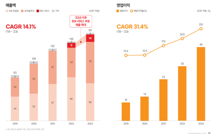 ㅇ 2023년 : 매출 161억 원, 영업이익 40억 원