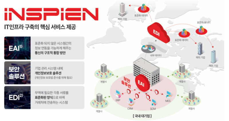 서로 다른 시스템 간에 데이터를 원활하게 주고받을 수 있도록 연결하는 솔루션입니다. 인스피언은 국내 SAP 연계 시장에서 독점적인 지위를 확보하며 탁월한 경쟁력을 자랑합니다.