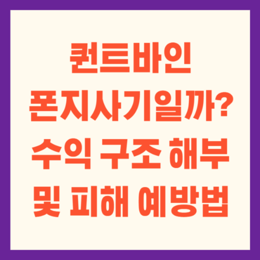 오늘은 뜨거운 감자, 퀀트바인 투에 대해 이야기해보려 합니다. 수익 인증이라는 달콤한 말 뒤에 숨겨진 폰지사기 원리와 피해 예방 방법에 대해 낱낱이 파헤쳐 보겠습니다. 이 글을 통해 퀀트바인 투자의 위험성을 인지하고 현명한 투자 결정을 내리실 수 있도록 돕겠습니다.